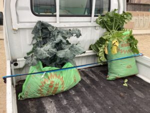 さて、JAわかやまさんのご協力で、野菜袋栽培をすすめていましたが、1月14日(金)からの展示会のため、JAわかやま中央営農センターへ栽培した野菜を運搬してきました。