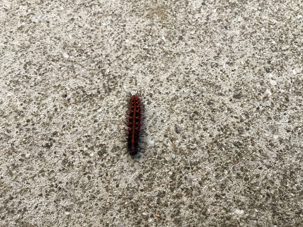 見た目は非常に毒々しいですが、実は全く毒のない蝶々「ツマグロヒョウモン」の幼虫。